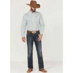 Outlet π Cinch Men’s White Small Floral Geo Print Long Sleeve Button-Down Western π Shirt π―