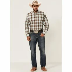 Discount βοΈ Cinch Men’s Brown Large Plaid Long Sleeve Button-Down Western π Shirt βοΈ