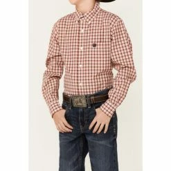Flash Sale π Cinch Boys’ Pink Plaid Long Sleeve Button-Down Western π Shirt For Men π₯°