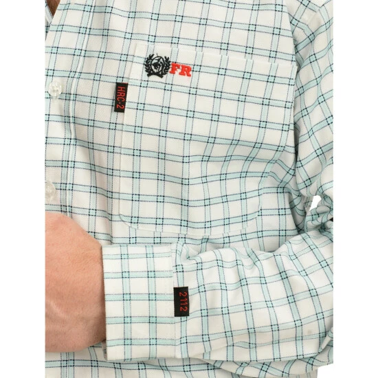 You can handle the hottest jobs with this shirt from Cinch. Made from 7.5-ounce, 100% cotton flame resistant long sleeve shirt from Cinch has the recognizable Cinch FR logo on the left chest. This handsome but rugged green and white plaid men’s work shirt meets HRC-2, ATPV 8.5, and 2112 standards. When you’re working, let Cinch help keep you safe and covered.