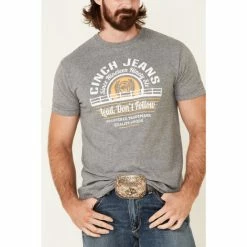 - “Cinch Jeans” & ” Lead Don’t Follow” circle logo graphic on front