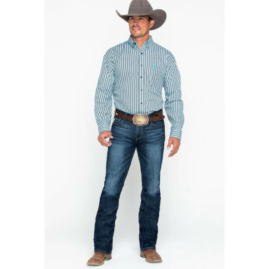 Buy π Cinch Men’s Modern Fit Diamond Geo Print Button-Down Western π Shirt Royal Blue β