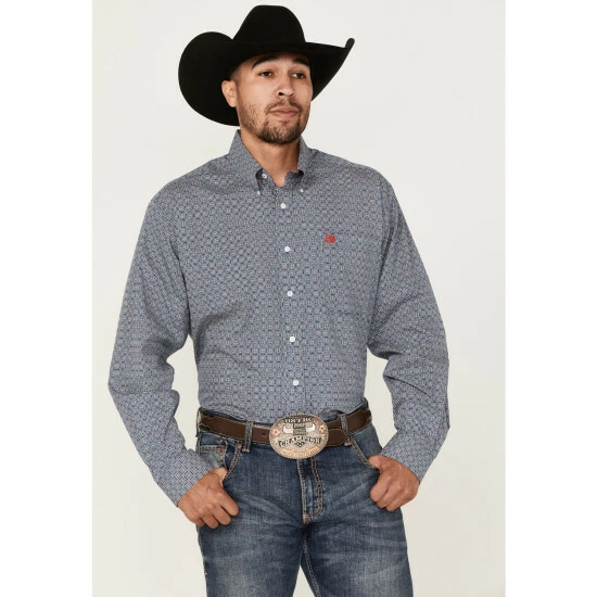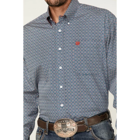 Outlet π Cinch Men’s White Small Floral Geo Print Long Sleeve Button-Down Western π Shirt π―