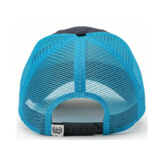 - Navy front and bill with light blue mesh back