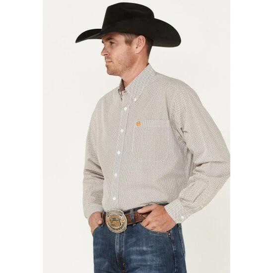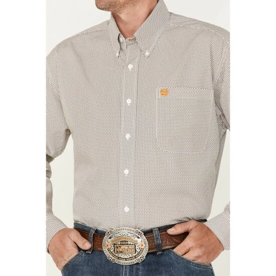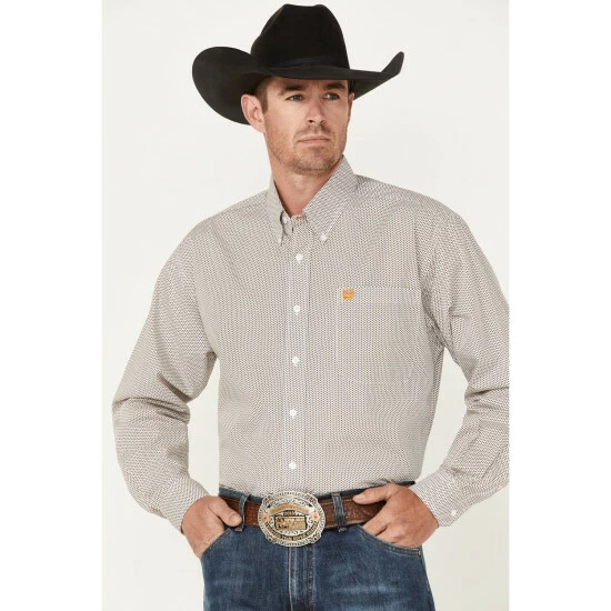 Outlet π Cinch Men’s White Small Floral Geo Print Long Sleeve Button-Down Western π Shirt π―